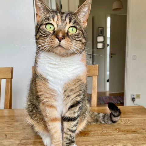 Hona på 14 månader söker hem helst som ensamkatt där hon inte behöver vara själv hela dagarna. Hon trivs inte I stor flock. Hon är inte dum på ngt sätt utan kliver fram när hon är ensam. Kan gå med en snäll katt i hemmet.