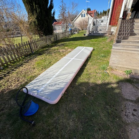 Säljer en 5 meter lång airtrack i fint skick. Perfekt för gymnastik, parkour, cheerleading eller lek hemma i trädgården. Dock utan med följande pump.
