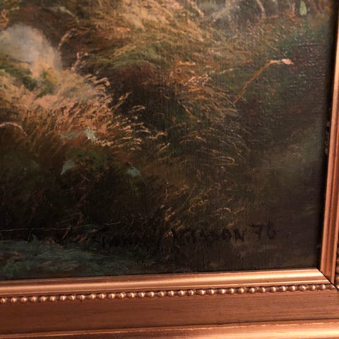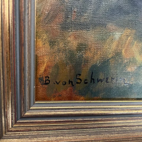 Målning figurativt motiv vid havet i ram