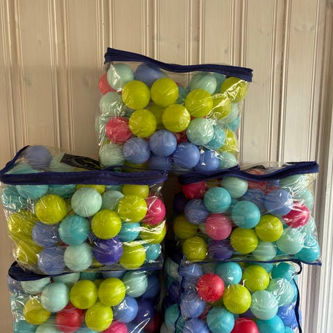 Jag byggde en sarg i ett hörn på ca 1.2x1.8 m. Bollarna var sedan ca 2-3 dm djupt.