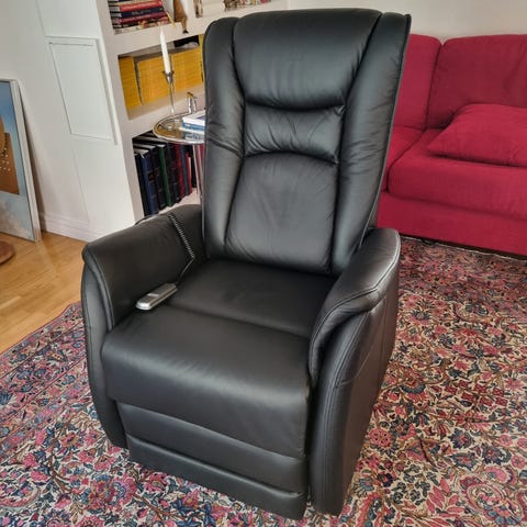 Mio Elof el-reclinerfåtölj i svart läder/konstläder och lyftfunktion.