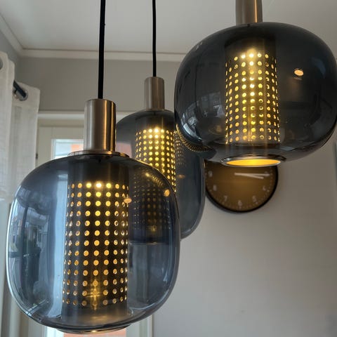De guldiga delarna (bland annat de som sätts mot taket) är egensprayade i guldfärg (lite ojämn färg, men inget som syns när lamporna sitter i taket).