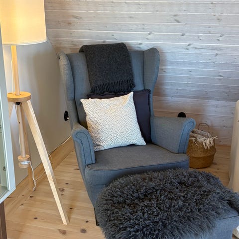 Sittdyna har jag lagt ett överkast över, kan lätt byta när man vill ha en förändring.