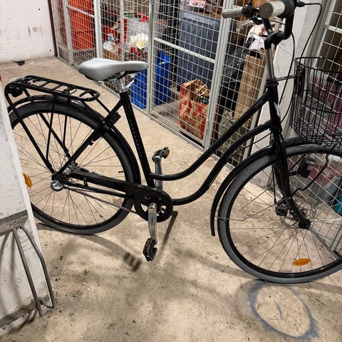 Stålhästen stadscykel för unisex med ramstorlek 53 cm och 28"/700c-hjul. Utrustad med stor framkorg och pakethållare bak. Cykeln har upprätt körställning, handbroms fram och fotbroms bak. Passar för vardagscykling i stadsmiljö och pendling på kortare och medellånga sträckor.