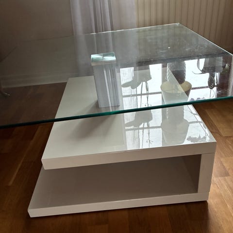 Soffbord vitt med glasdetalj och hylla