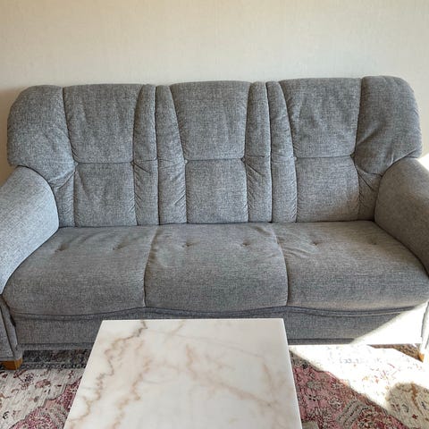 Soffan är i mycket fint skick med ett slitstarkt tyg i god kvalitet. Bortskänkes mot avhämtning.
