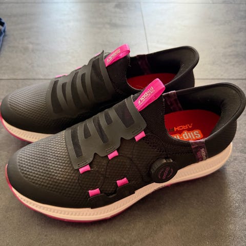 Skechers Performance golfskor i storlek 36. Skorna är i marinblått med rosa detaljer och vit sula. Ovandel i textil och syntetiskt material. Modellen har snörning och mönstrad yttersula för grepp. Väldigt bekväma , kan hämtas på plats