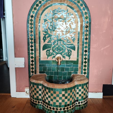 Elegant och dekorativ mosaikfontän med inbyggd vattenpump som skapar ett lugnande porlande ljud. Handgjord i traditionell marockansk stil med färgstarka mosaikdetaljer som ger ett unikt och exklusivt uttryck. Passar perfekt för trädgård, uteplats eller inomhusmiljö och fungerar som ett stilfullt blickfång.