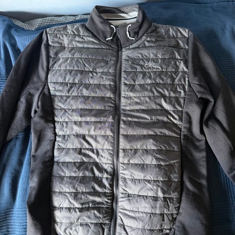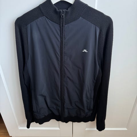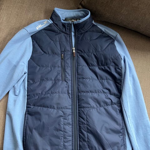 Lindberg golfjacka, stl S (Herr), i blått. Monogram från Ullna. Sidfickor med dragkedja. Innerficka.