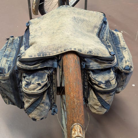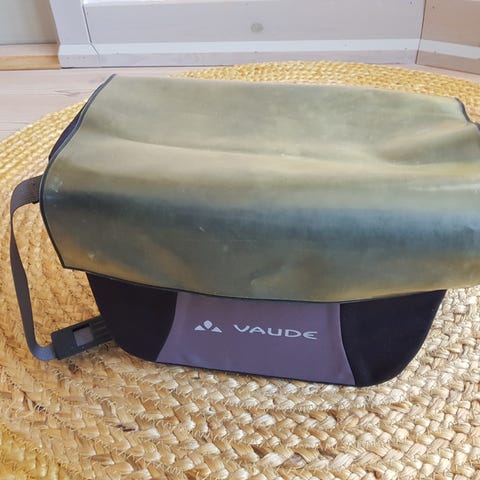 VINTAGE - Cykelväska i galon från 50-talet! mått ca 33x16x11cm, tål väder å vind då den e i galon, hakarna e rejäla i plastöverdragen stål, hel å funktionsduglig, härlig 50-tals färg! AVHÄMTNING på SÖDER...