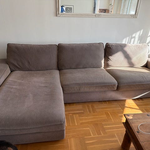 Höger divan är 2 m lång, vänster 1,5 m. Bredd 3,1 m.