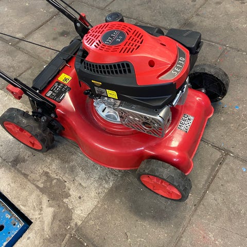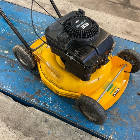 Startar och går hur fint som helst, väldigt fräsch och få skrap eller märken. Vagnen/skottkärra medföljer.