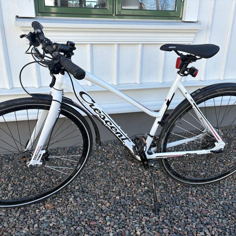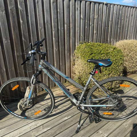 Merida speeder hybridcykel för dam med ramstorlek 47 och 28" hjul (700c). Utrustad med växlar och skivbromsar enligt bilder. Passar för träning och fritidscykling.