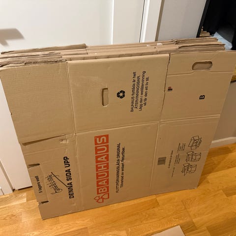 Bortskänkes: Flyttlådor, hyllor etc