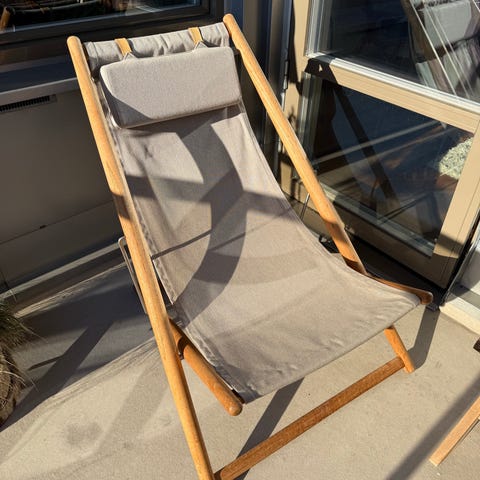 Solstol i hopfällbar modell med grön textilsits och vit metallram. Köpt på Mio för 599 märke Lagun säljes för 300 st
