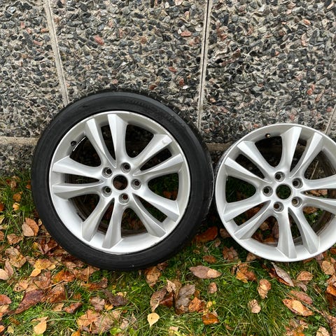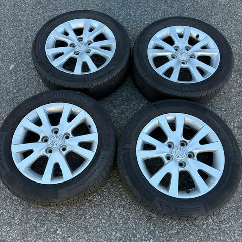 Fälgar i relativt gott skick. Har suttit på en Golf. Däcken är slut.