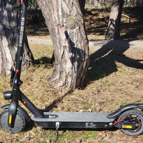E-wheels E2S v2 PRO elscooter i svart färg. Går i 30 km/h och kan köras i olika modes. Mycket skön körkänsla och bland dem bästa e-scootrarna i svensk marknad.