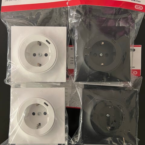 20 st Elko One 2-vägs jordat vägguttag låg Svart
