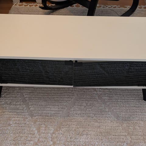 Mycket fint modert tv bänk från Rge. Modell Hugo. Väll genomtänkt design störa ventilationshåll perfekt för konsoler, förstärkare eller dator.