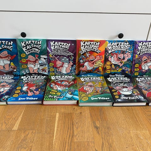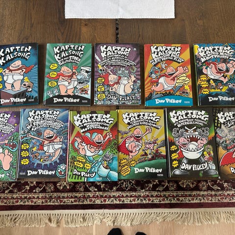 4 Stycken Hundmannen böcker på Svenska och 1 Hundmannen (Dog Man) på Engelska