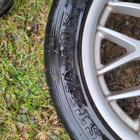 Finns lite skrap men annars ser dom bra ut. Nya Kumho däck 225/50zr17 rullat cirka 100 mil.