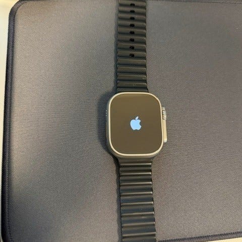 Storlek 49mm med god batterihälsa och flera armband att byta med.