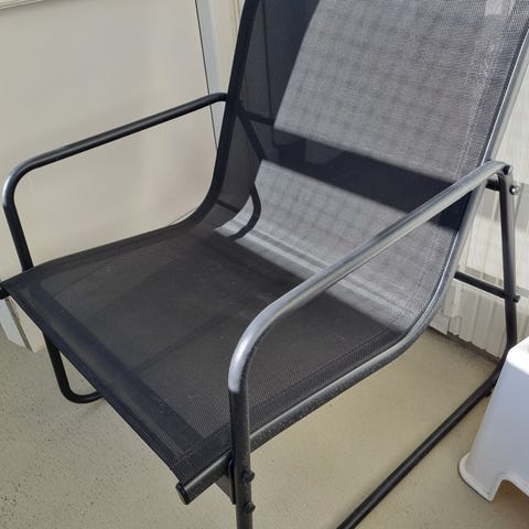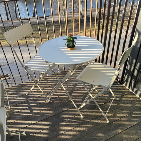 Hopfällbara stol i grönt och vitt, utgången modell på IKEA. Obs! Bordet ingår inte.