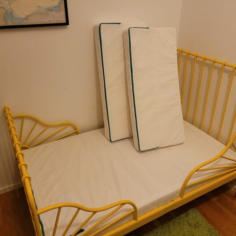 En sådan säng där den håller länge, säng som kan växa upp till 200 cm och är 80 cm bredd.