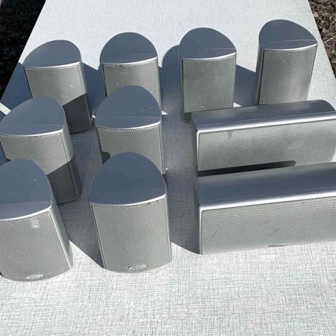 Eltax Linear högtalarsystem (5) med centerhögtalare Och två sidohögtalare och två bakhögtalare Centerhögtalare har en musikeffekt på 200 Watt, nominell effekt på 150 Watt, frekvensrespons 35-22.000 Hz och en impedans på 4-8 Ohm Satellithögtalarna har en musikeffekt på 100 Watt, nominell effekt på 60 Watt, frekvensrespons på 55-16 000 Hz och en impedans på 4-8 Ohm Designad och utvecklad i DANMARK