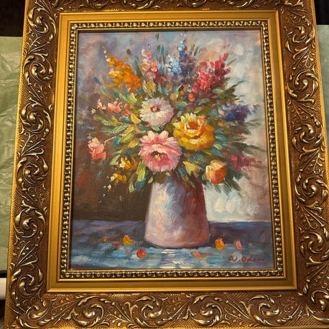 Oljemålning blomstermotiv med förgylld ram