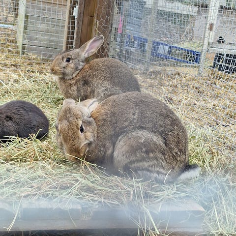 Två kaniner, mamma Elli och hennes son Bull måste tyvärr hitta nytt hem då min mammas hyresvärd inte vill ha kvar dem på gården💔 Elli är 6 år och Bull 2. Bull (den gula) är givetvis kastrerad. De tycker inte om att vara inomhus och är vana vid mycket utrymme och att kunna röra sig fritt. Rör, många hus, uteburar och 6 höbalar (räcker många månader) ingår. Vi är måna om att de ska få ett bra och livslångt hem där de får fortsatt mycket utrymme.
