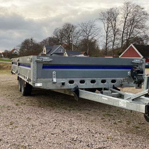 Ett multisläp från WT trailer med totalvikt på 3500kg samt 2340 i lastvikt, flakmått 6500x2160 försed med 3 axlar med 10" hjul. släpet är utrustat med aluminium lämmar, aluminium golv med aluminium rampor under golvet, 10 surrningsöglor nefällda i flaket.