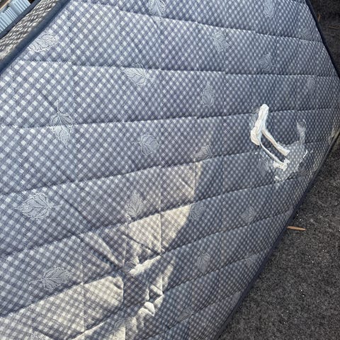 Madrass kan följa med om önskas. Den har en färgfläck – den går att tvätta bort till stor del, men en mindre fläck kommer att vara kvar.