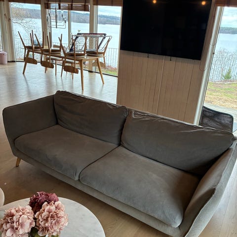 Coffee soffa Mio svängd soffa med 2 nackstöd grå längd ca 3,90 cm