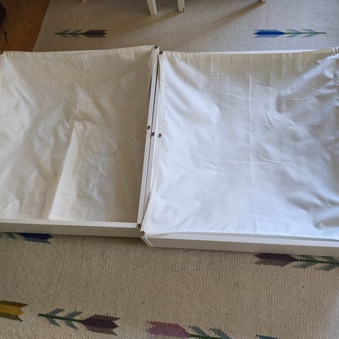 2st sänglådor från Ikea från Engan-serien. Lådorna har hjul så de enkelt kan skjutas in under sängen. Huvudsakligen fint skick.