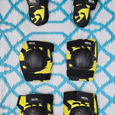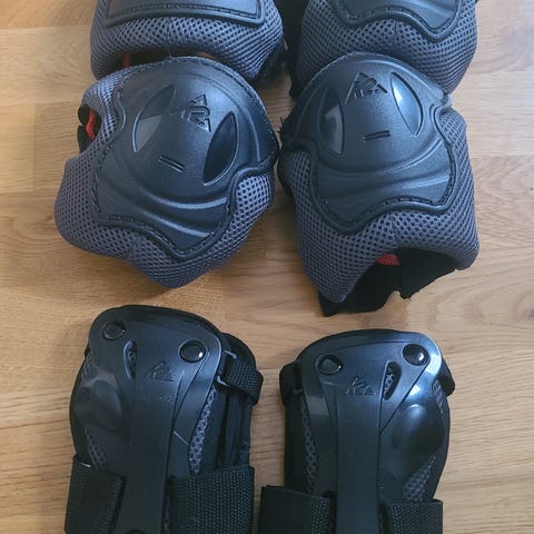 Inlines skyddsutrustning set i svart färg. Uppsättningen inkluderar knäskydd, armbågsskydd och handledsskydd. Passar för användning vid inlinesåkning, skateboard eller liknande aktiviteter där extra skydd behövs för knän, armbågar och handleder. Passar ungdom/vuxen.