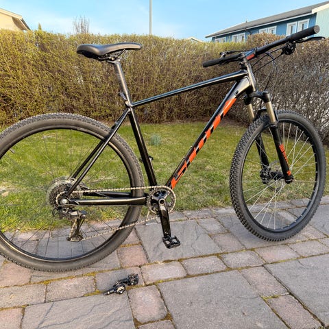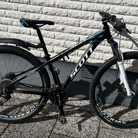 Scott mountainbike 930 Aspect nyservad och i väldigt bra skick, 27 Deore växlar, grova rejäla dämpare med lock funktion från styret, flaskhållare, dubbeltrampor med vanlig flatsida och lock på andra sidan , Ramstorlek- Large, nytt 29” däck fram bra däck bak,