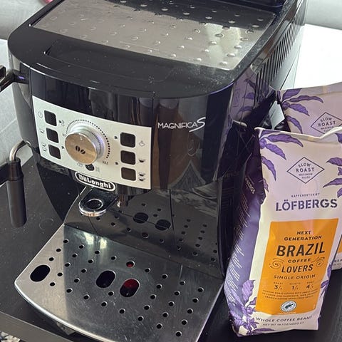 De'Longhi espressomaskin i rostfritt stål. Maskinen har ångstav för mjölkskumning och avtagbar droppbricka. Medföljer portafilter, flera filterkorgar och tamper. Passar för tillredning av espresso och andra kaffedrycker i hemmet.
