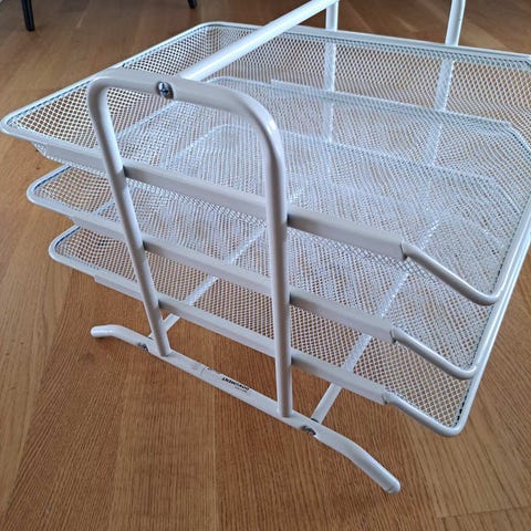 Klassiskt och praktiskt brevfack i silverfärgad metall (nät/mesh). Perfekt för att organisera skrivbordet, sortera post eller förvara barnens teckningar.