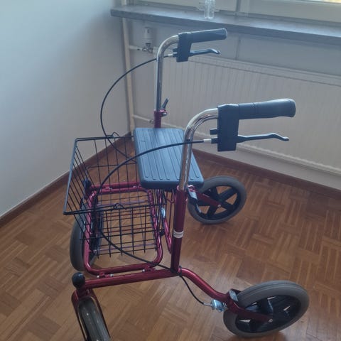 med reglerbara styren med bromsar, bred sittplatta, plats för varukorg, enkel att fälla ihop, smidig o mycket trygg och stabil, lätt att svänga med, är både för utom o inomhusbruk.