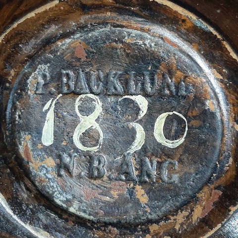 Allmogeljusstake trä rödbrun från Steneby HF