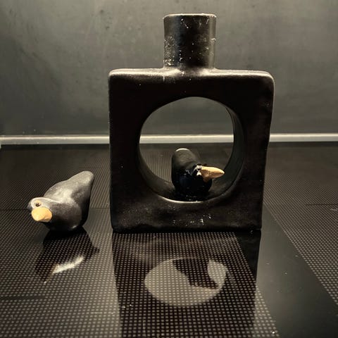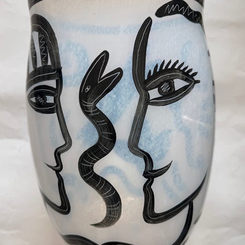 Keramikpjäs av göteborgskeramikern Herman Fogelin. Unik, charmig pokal döpt till Lilla pärlan. Bränd orange, svart , gul och blå.