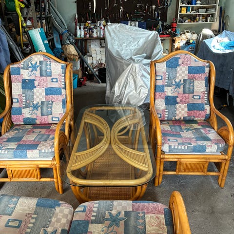 2 stolar och ett bord i konstrotting: pris 3000kr (nypris 6000kr)