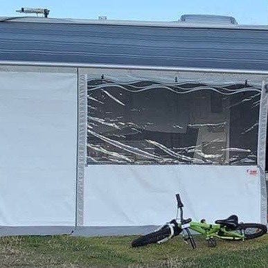 En extra vägg följer med så det passar på en 410 markis men den har en annan färg tyvärr.