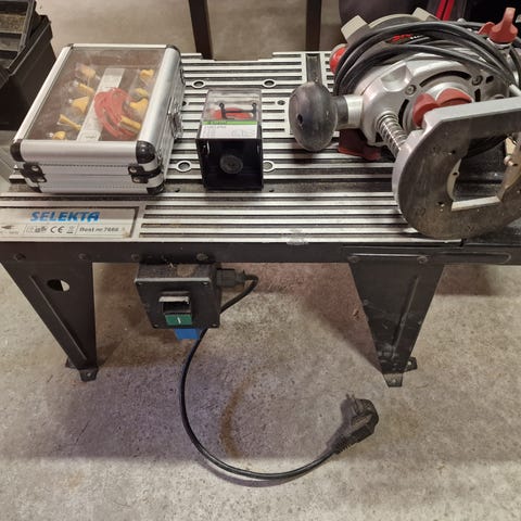 Maskinen är oanvänt och går att montera i ett stabilt bord med arbetsyta i trä och metallstativ. Lämplig för fräsning av kanter, spår och profiler i olika trädetaljer. Elansluten modell med strömkabel och medföljande fräsbord som ger bättre kontroll och precision vid arbete. Passar för hobby- och verkstadsbruk där man behöver en stationär lösning för fräsning i trä.