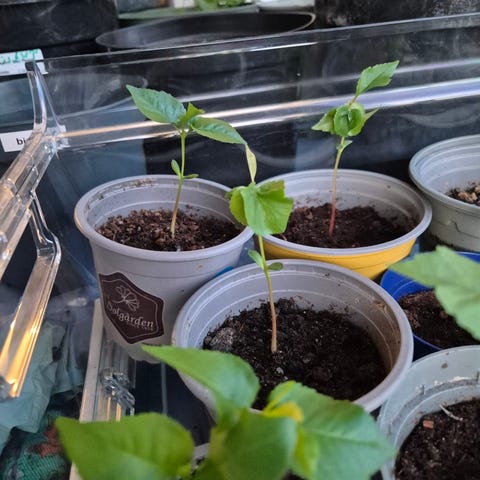 Massa klämmor mm, oanvända krukor .. Planteringsduk eller vad det heter, man fäller upp väggarna o planterar i den så jord inte hamnar överallt.