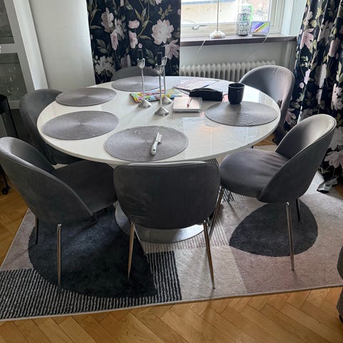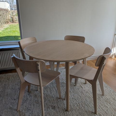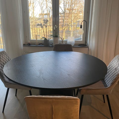 IKEA Mörbylånga matbord 145cm i diameter, finns litet skav i ena kanten enligt bild, i övrigt väldigt fint skick.