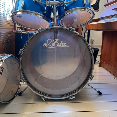 Tama Swingstar red badge made in Japan i bebisblått, 80’s omnisphere tom holder, 22” 16” 13” och 12”, saknar några hoops och stämhus, har haft det som reservdelskit och är alltså EJ komplett.