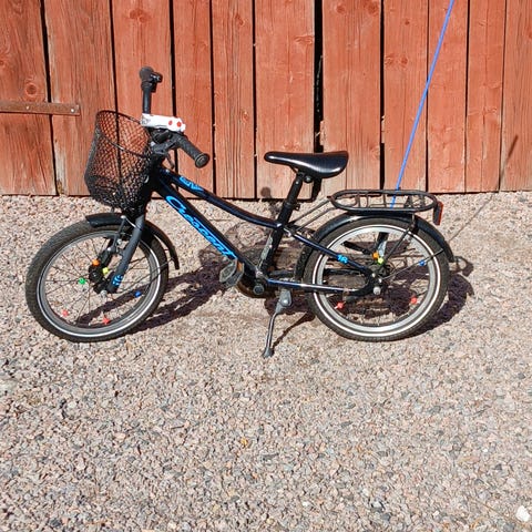 Barn cykel 16" som kan behöva en service samt en ny sadel, lite rost här o där men har stått under tak.