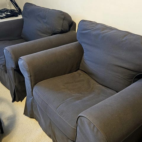 Säljer vår soffa som vi havt några år kanske 2 år cirka ny tvättad Derför måste man lägga in dom igen några l jag in sen orkade jag inte men ny tvättade. Den kostade 35 tusen kr ny. Men köpte ny för den passar inte in med våra nya möbler. Min dotter köpte med ny så denna säljer vi den ör just nu inne i garaget. Tänkt pris 3500 kr eller bud. Bildens ser ej bra styck dom lägg in dom så blir den fin igen